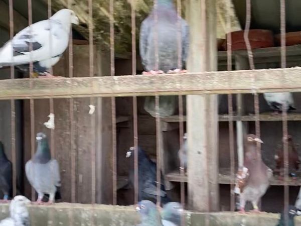 . Mixed line Van deer Janssen Van Rheed. If you call to our yard you will see some samples on display. There is a minimum 10 charge per pigeon sold.